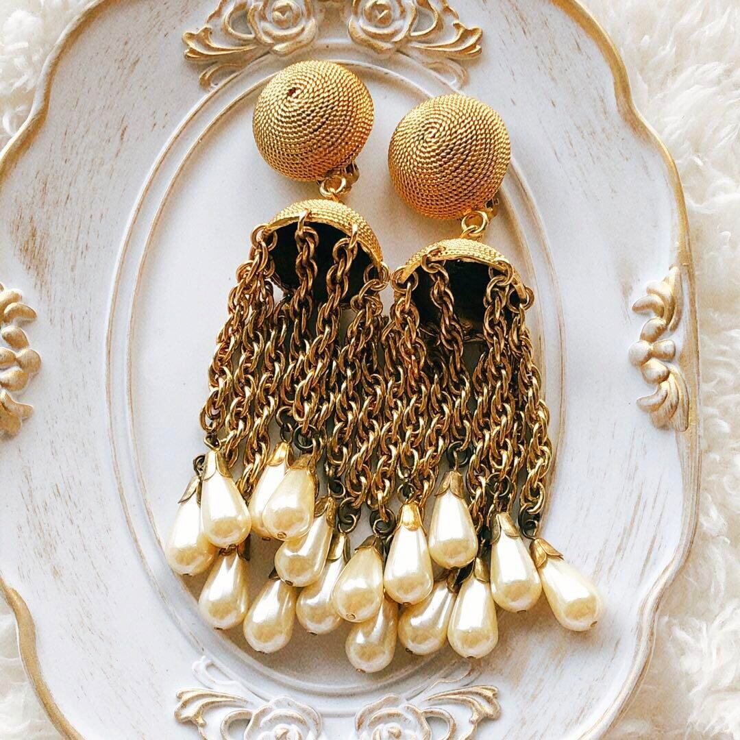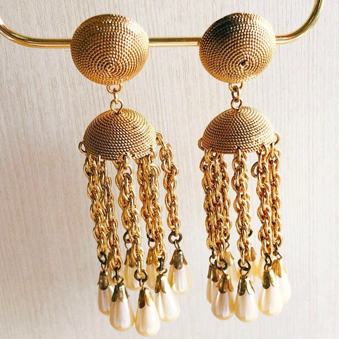 【Used】ヴィンテージ ゴールド ドロップパール イヤリング カサ クラゲ