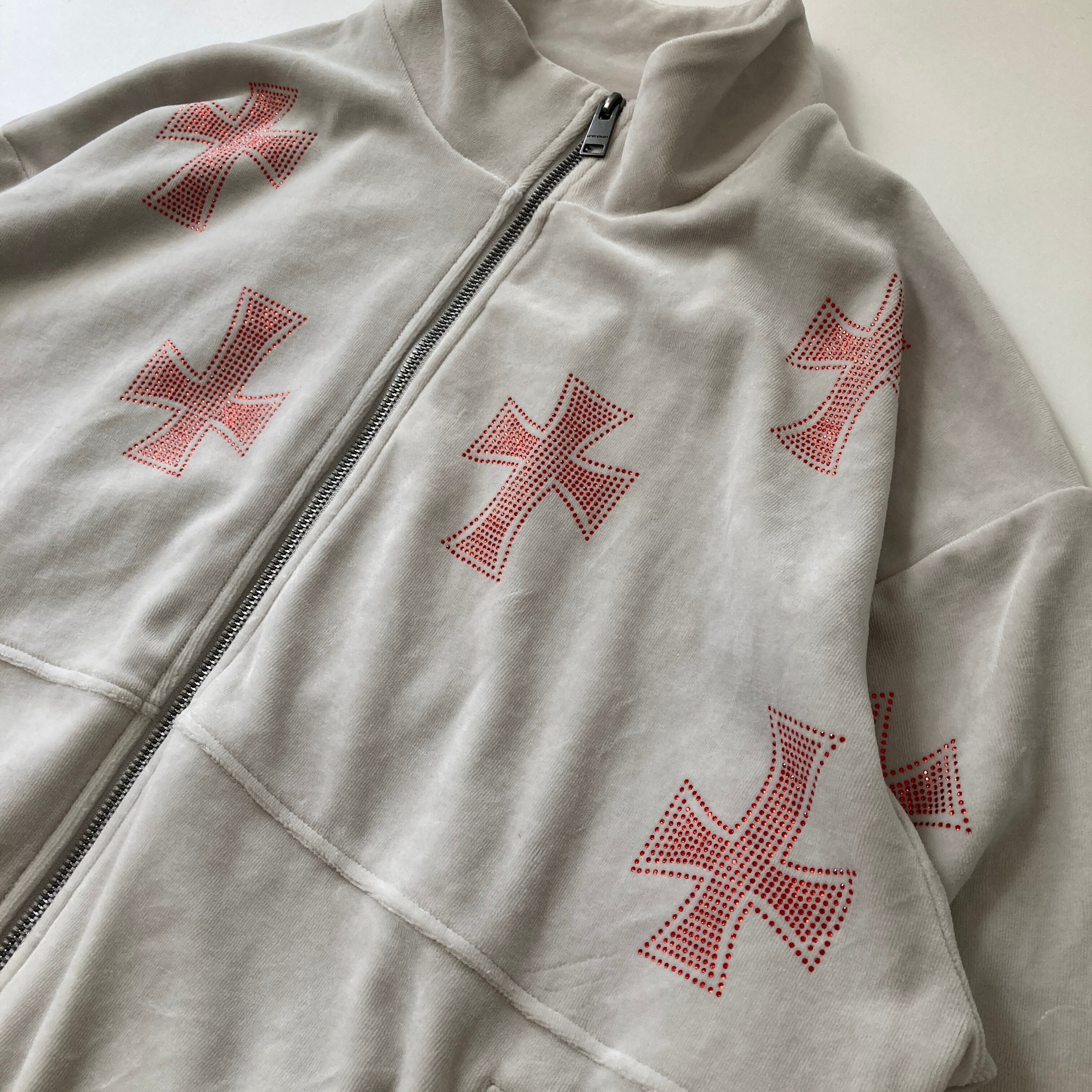 クロスのラインストーンが全面に配置されたストリートとラグジュアリーが融合されたジャケット