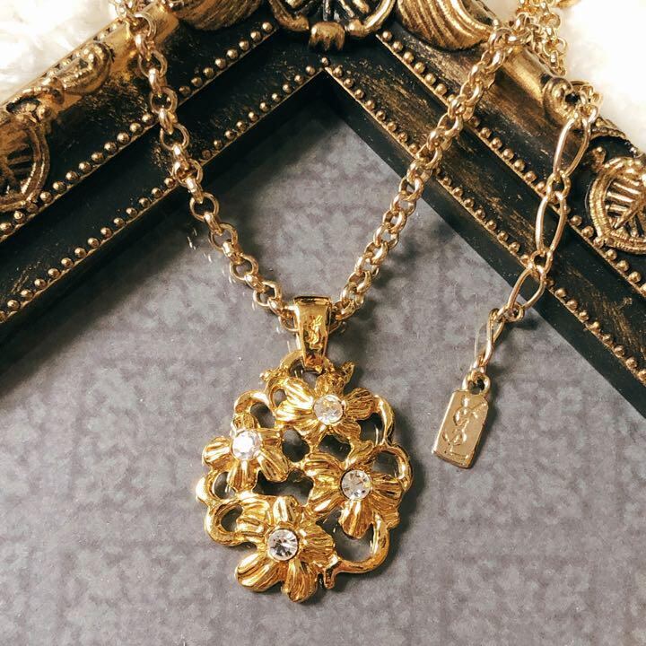 【Used】Yves saint Laurent ヴィンテージ ネックレス ゴールド 花