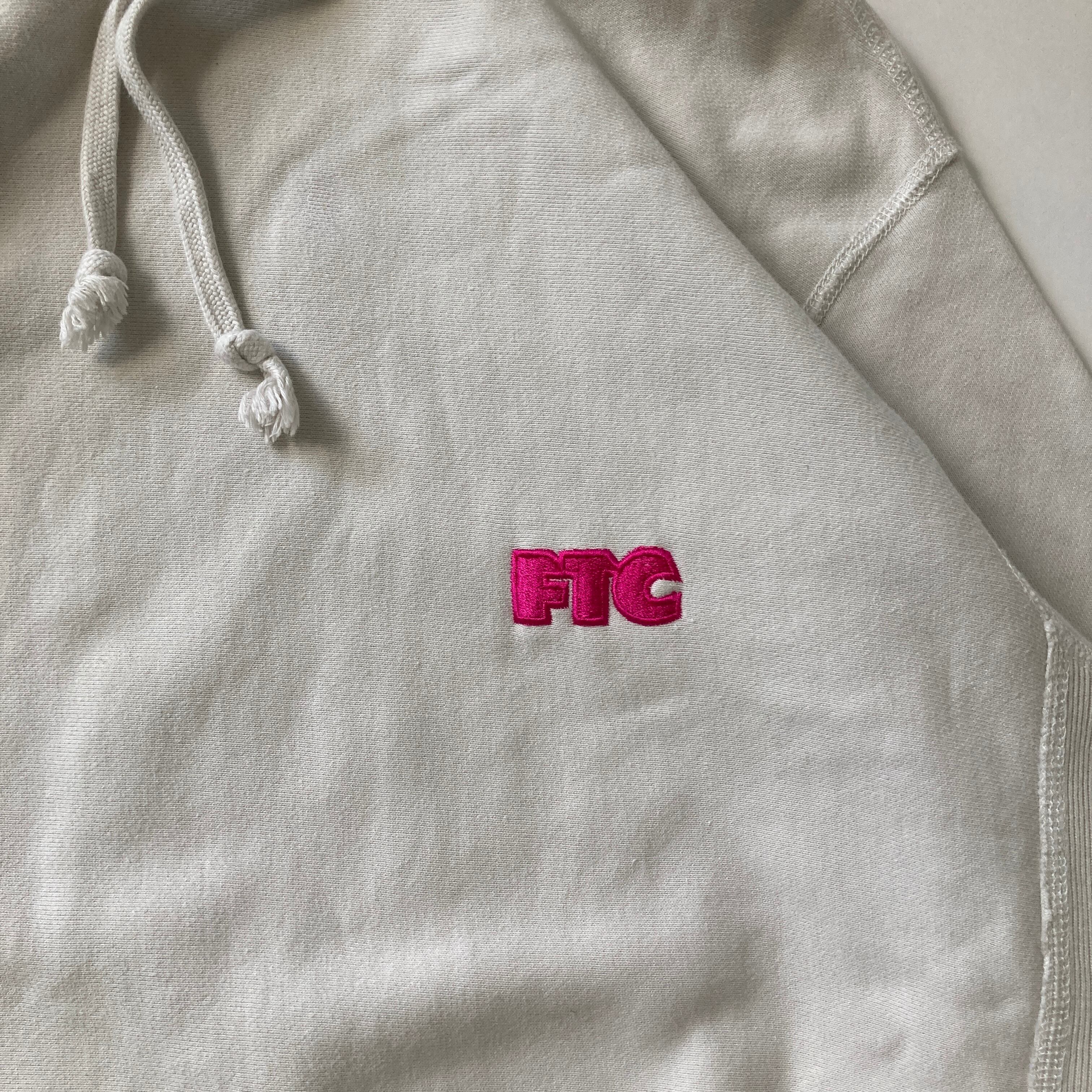 ピンクの刺繍ロゴが入ったスケーターブランド、FTCのパーカー