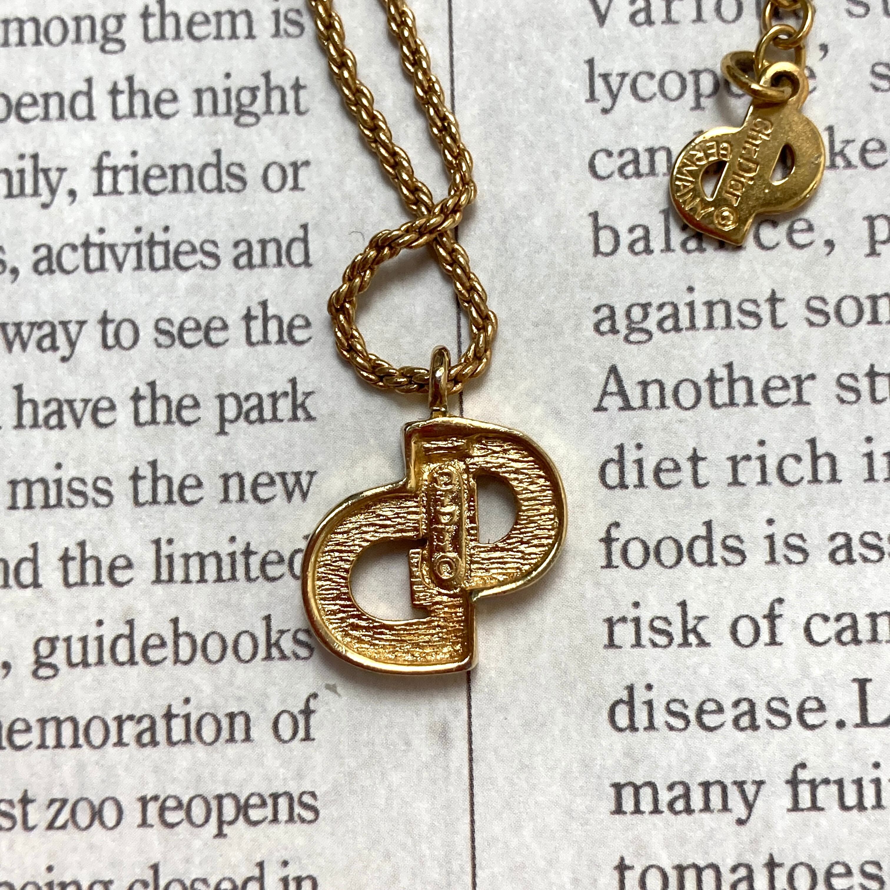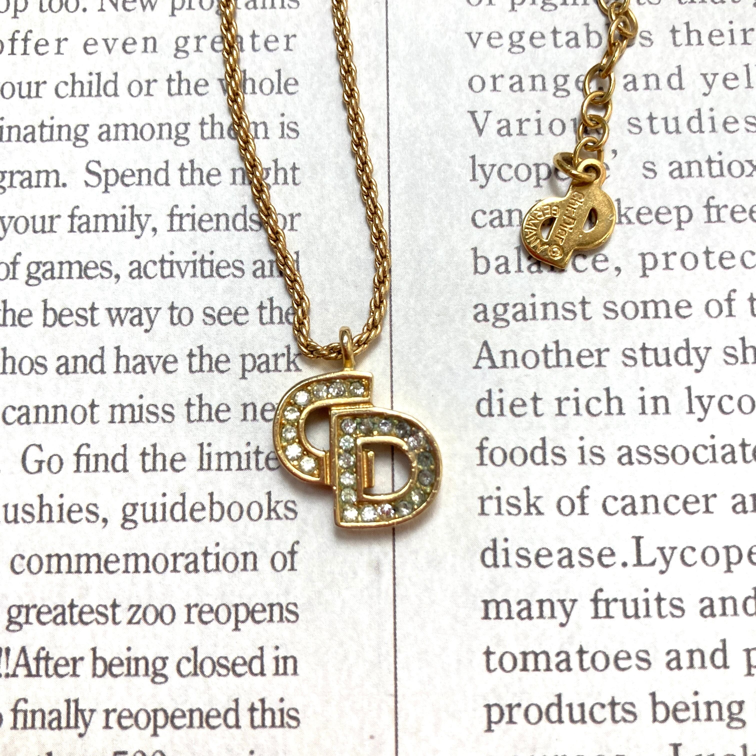 CDロゴにラインストーンのデコレーションが施されたゴールドネックレス