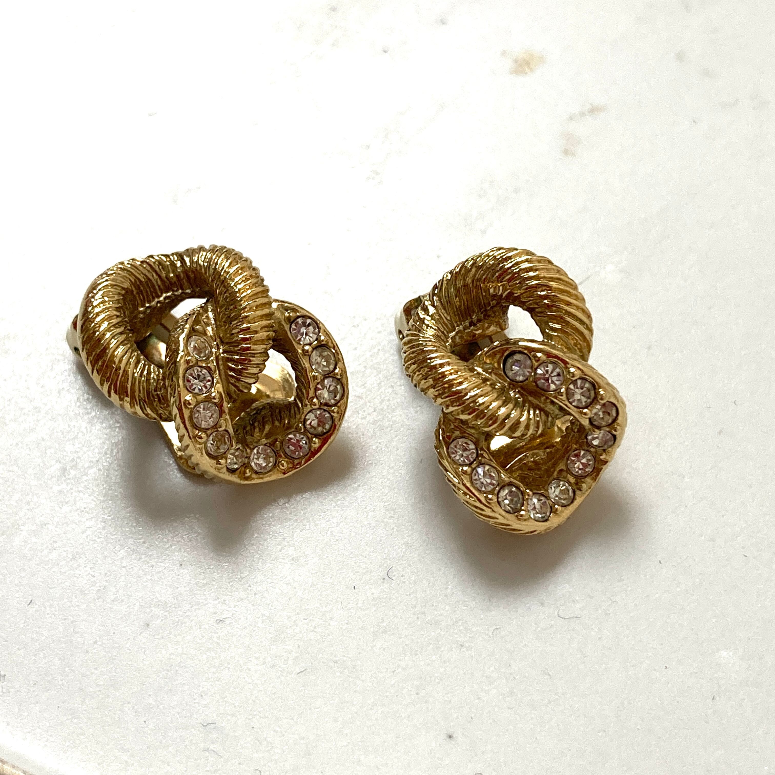 ディオールのツイストデザイン、ラインストーンデコレーションされたイヤリング。