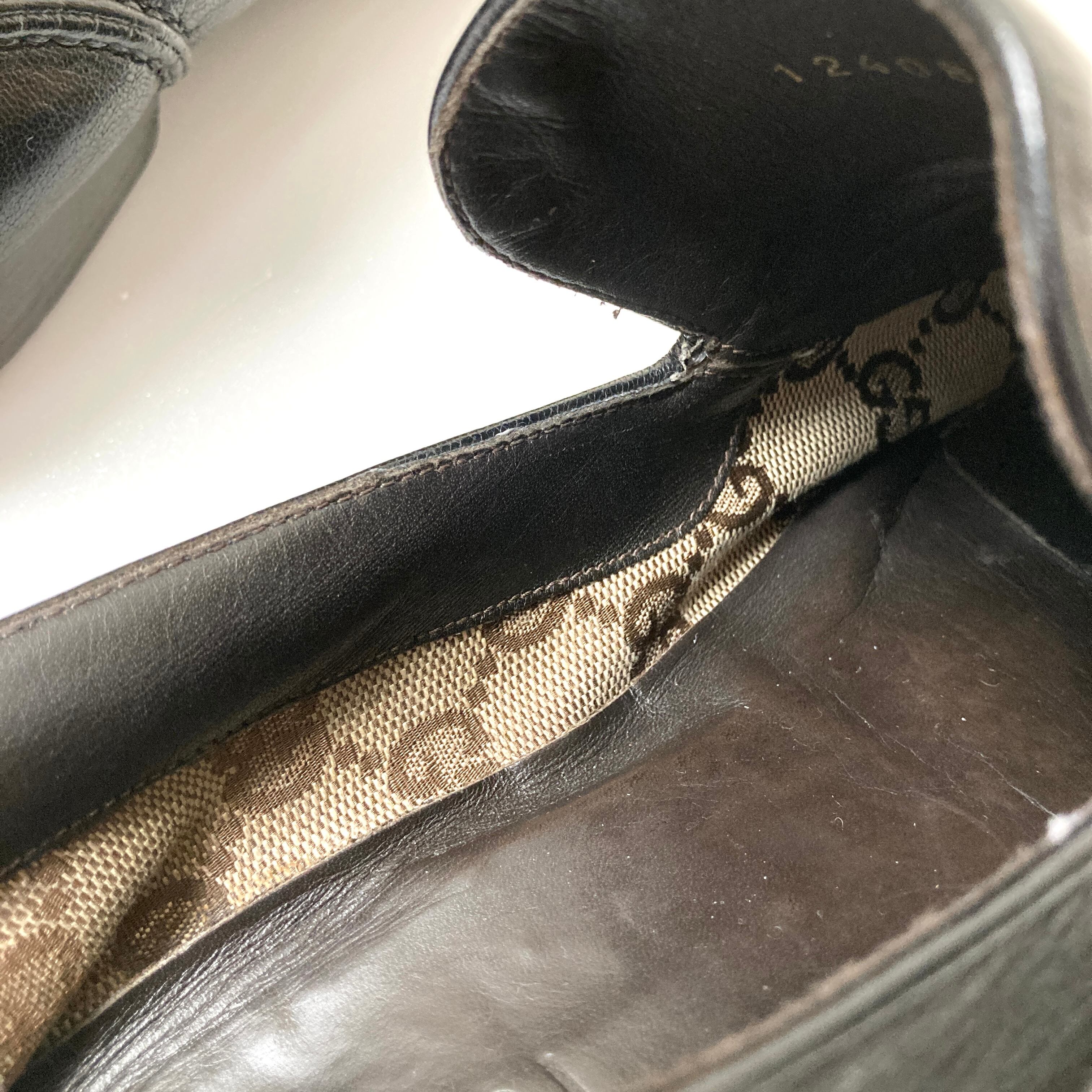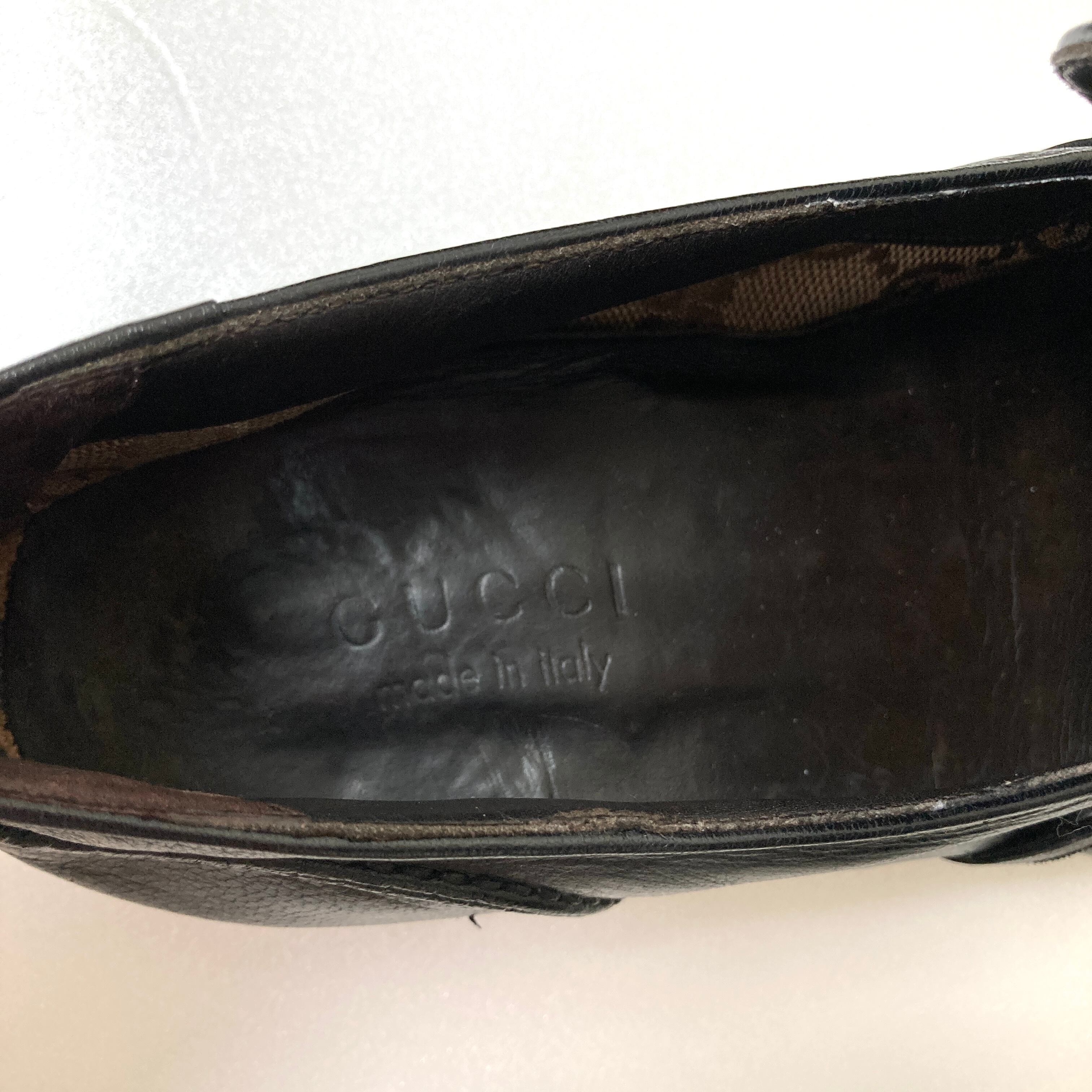 内側にはグッチのキャンバス生地があしらわれています。レザーは柔らかく、しなやかでストレスの少ない履き心地。