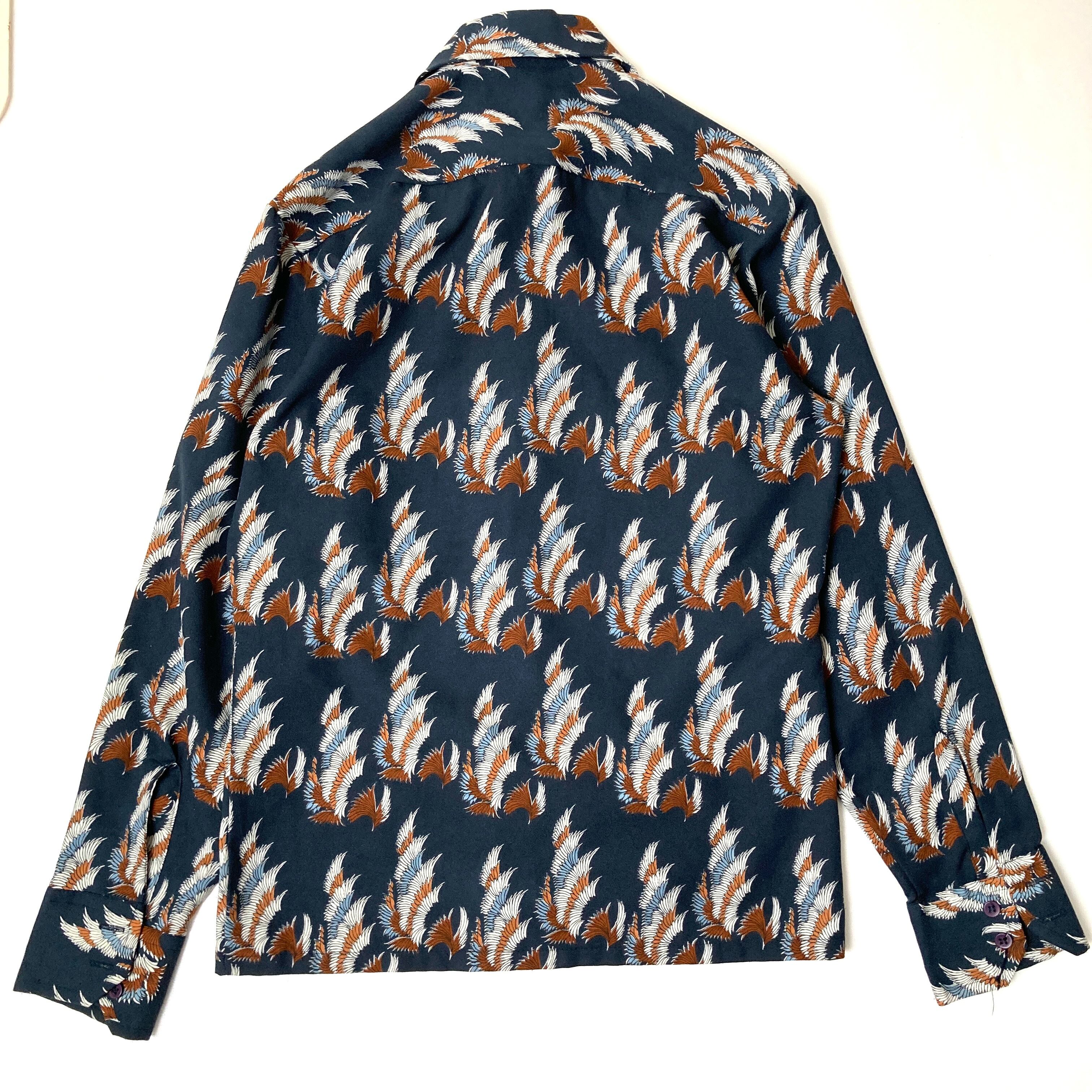 ダークネイビーに翼モチーフの総柄。年代を感じるボタンなどヴィンテージの魅力が詰まった1着。