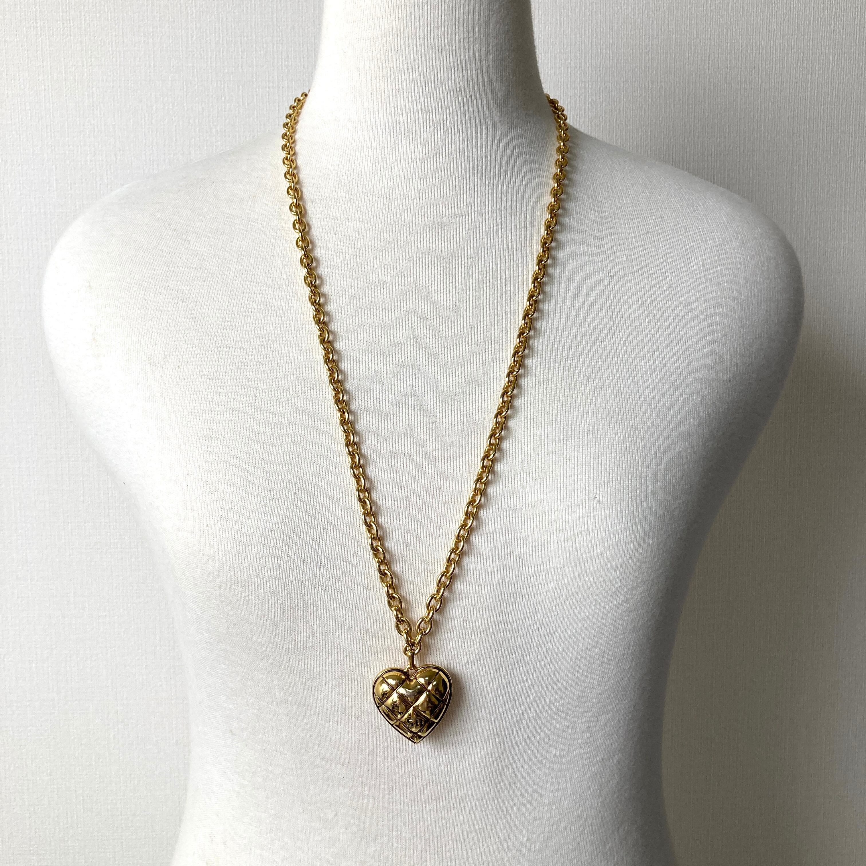 大ぶりのキルトデザインの立体ハートモチーフトップ。太めのチェーンで存在感のある人気のデザインです。