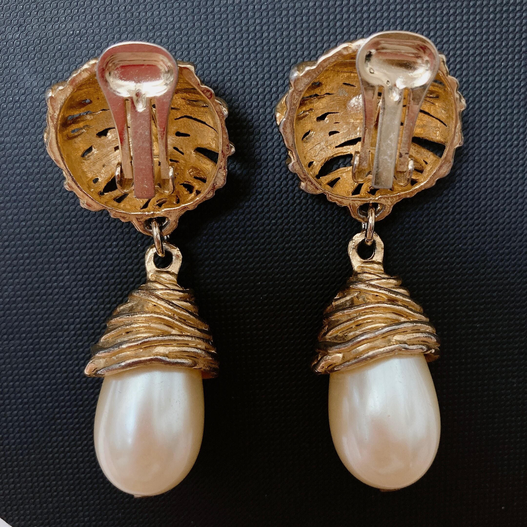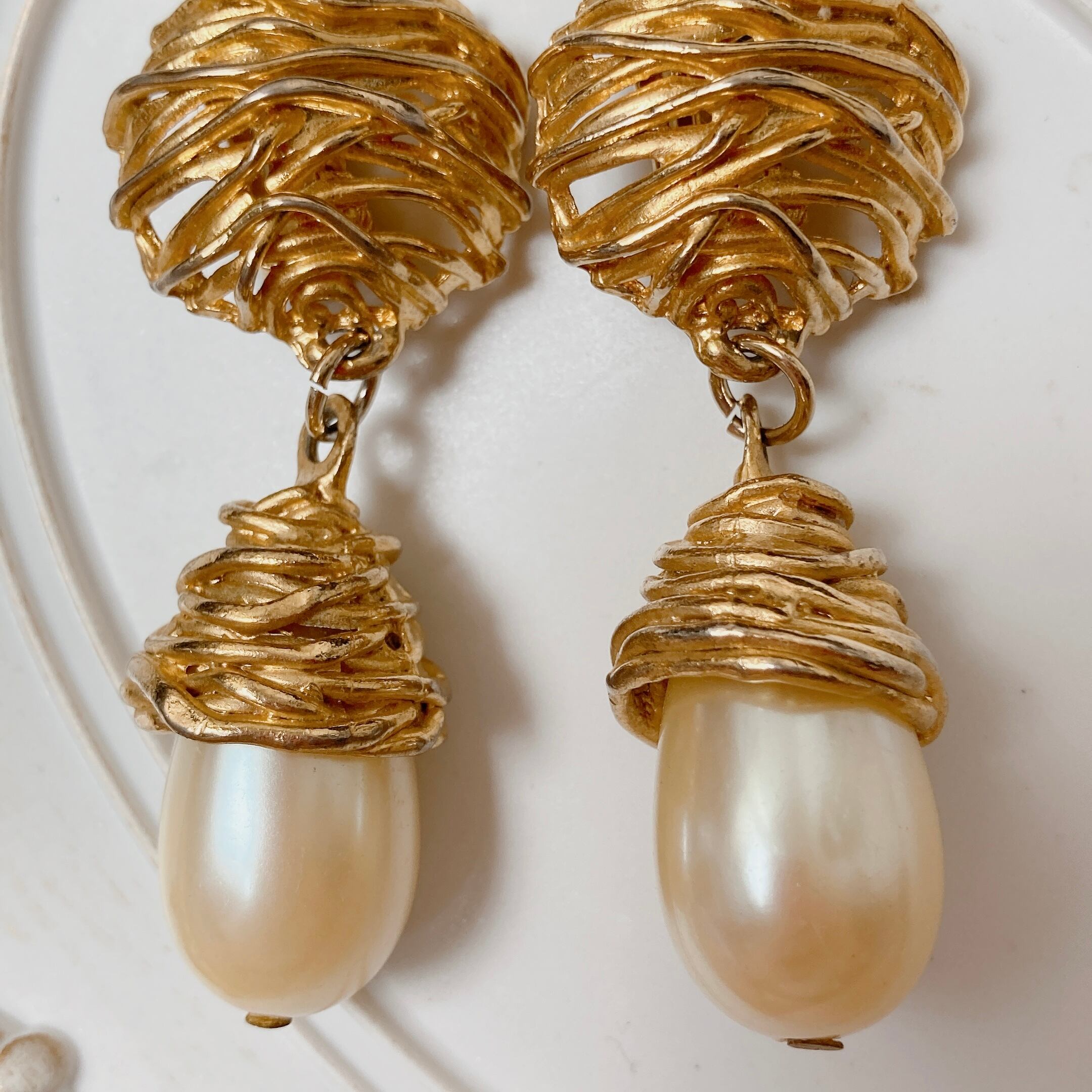 大ぶりのフェイクパールがゆらゆら揺れて上品かつ存在感のあるデザインです。