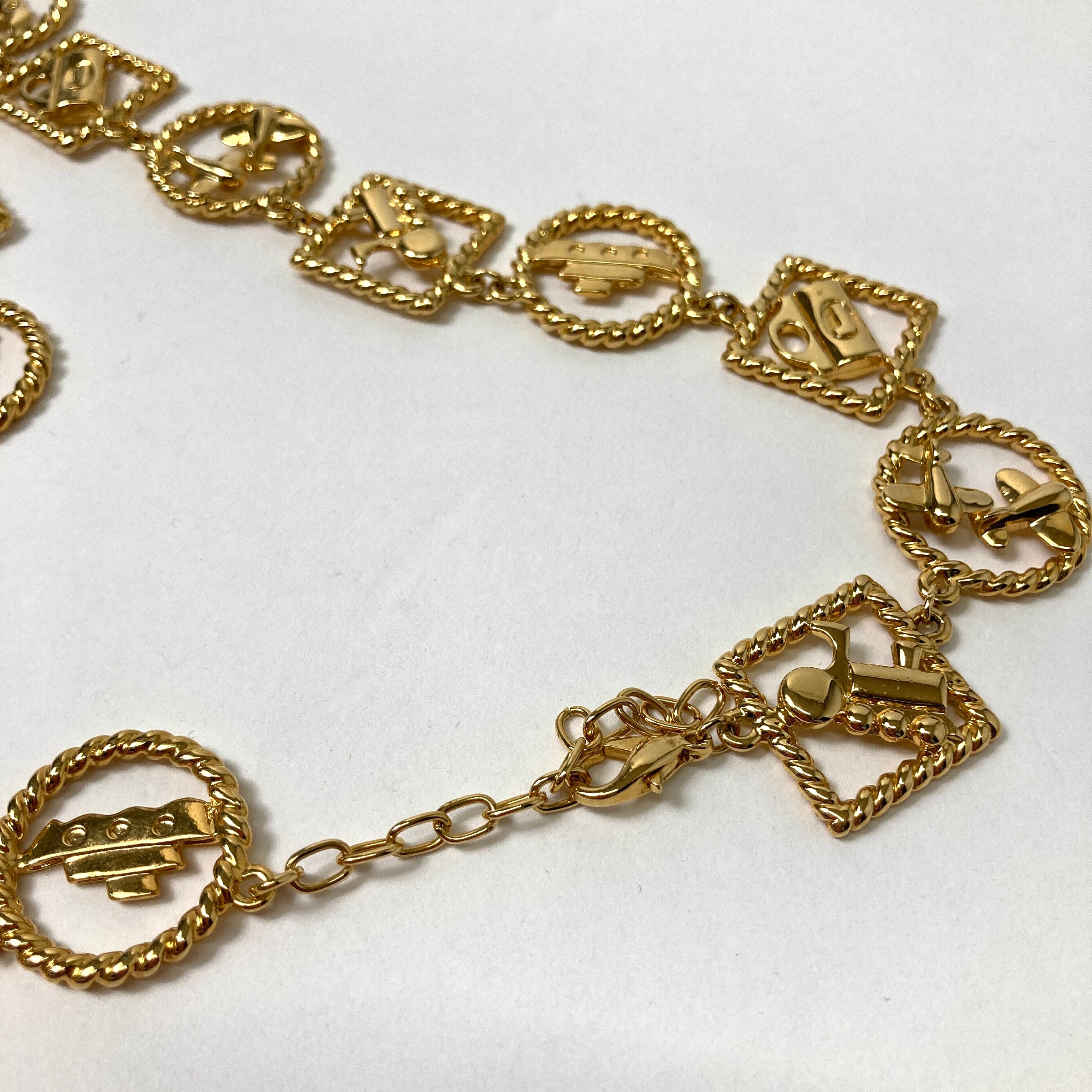 バッグや船、飛行機など様々なモチーフが使われたネックレス。