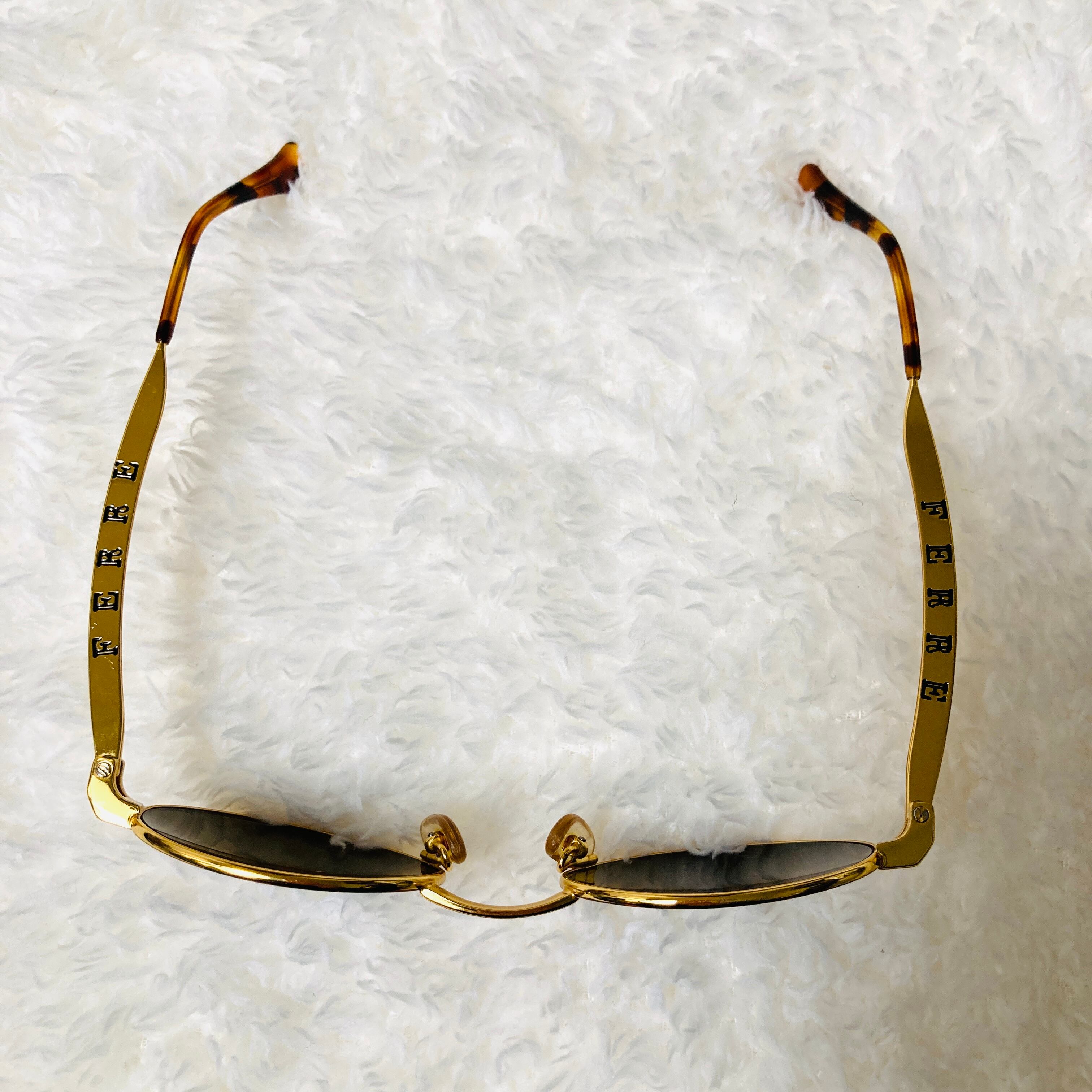 現在は販売されていないジャンフランコフェレのヴィンテージサングラスです。鼈甲とゴールドのコンビで美しさ、高級感のある逸品です。テンプル上部にはロゴの刻印入り。