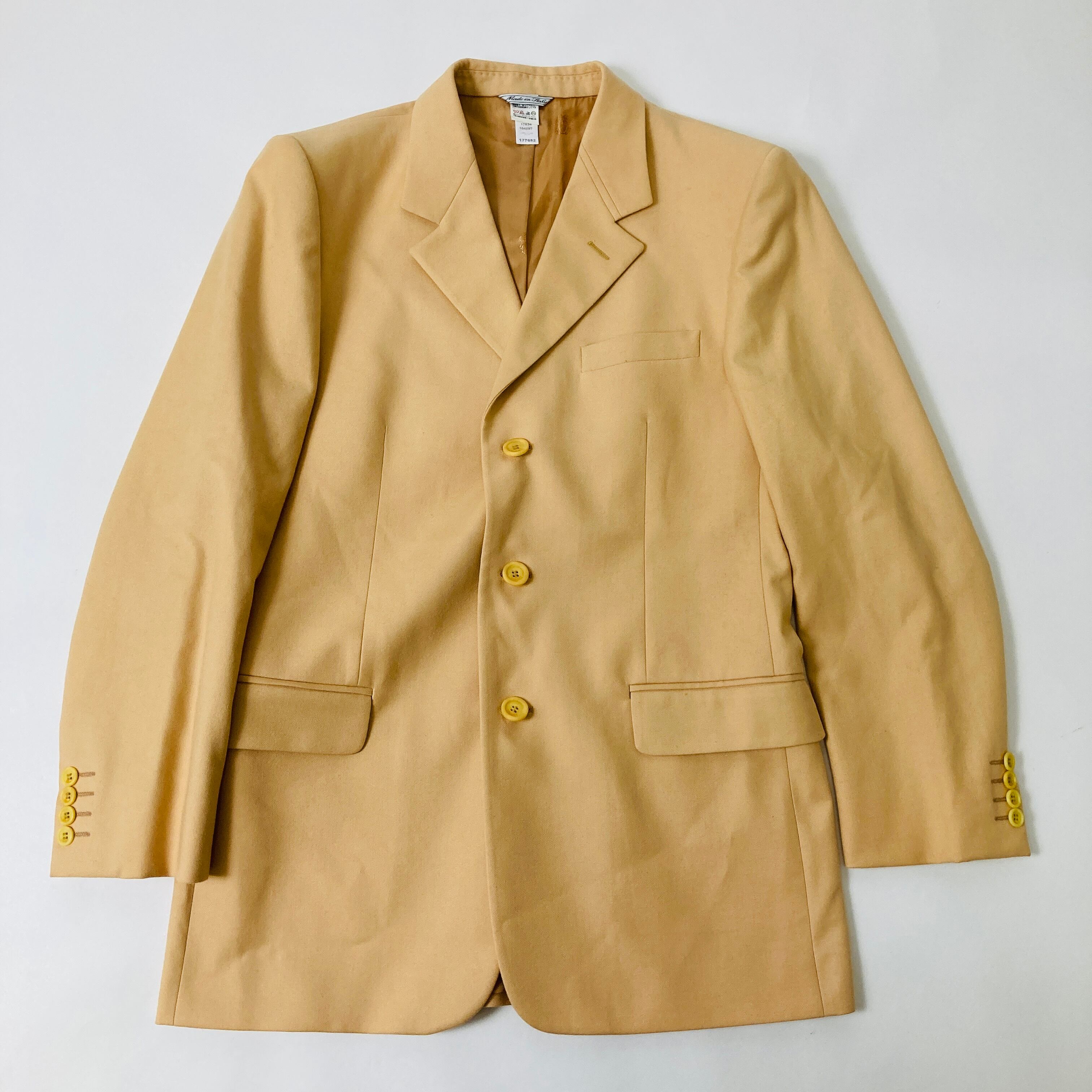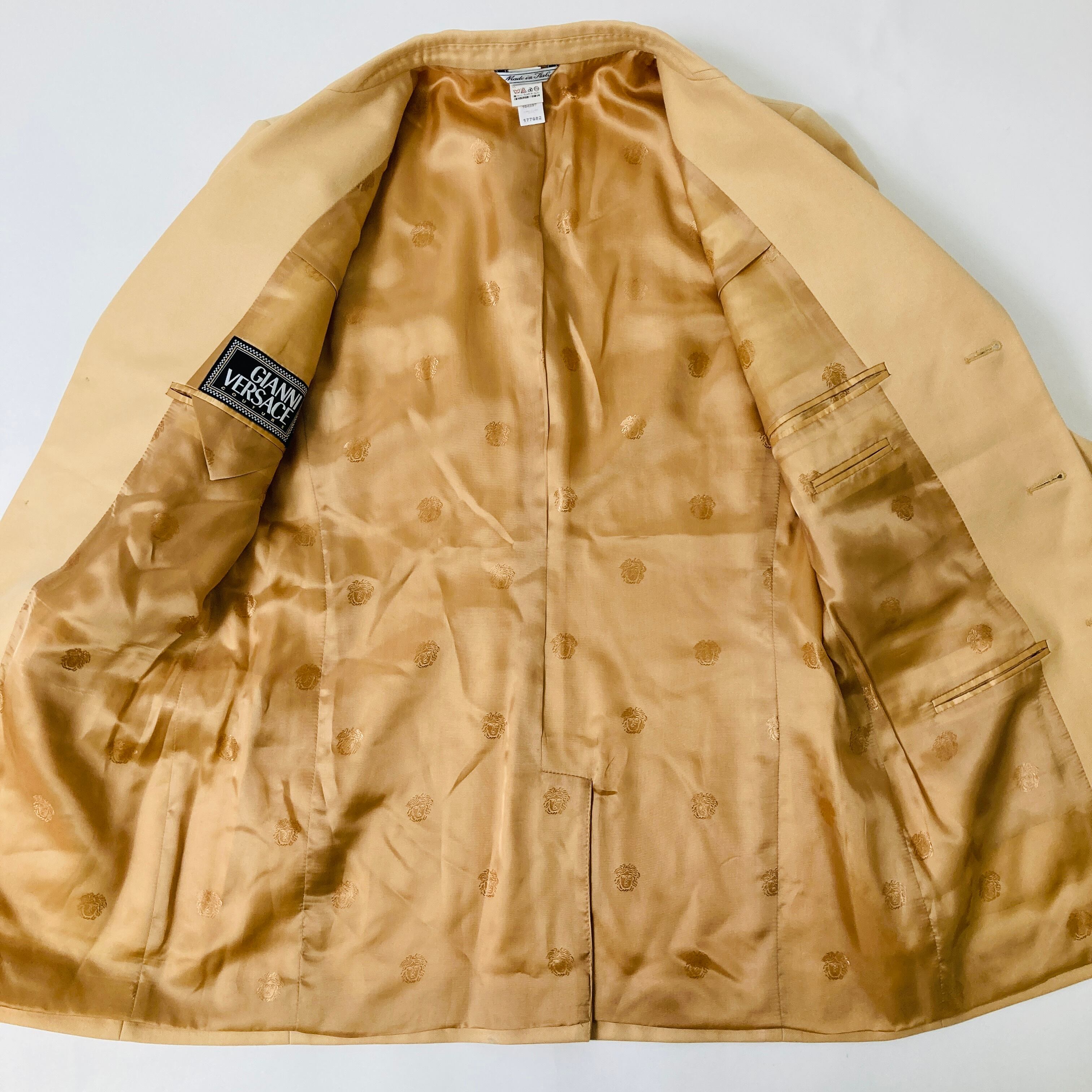希少なGIANNI VERSACEのカラースーツ。3ピースで残っているのもかなりのレアです。裏地はメデューサの総ロゴ。ボタンにはVERSACEの刻印入り。バブル期を感じさせるセットアップです。
