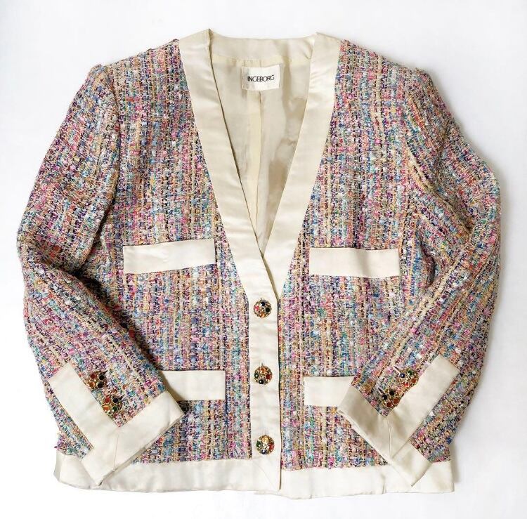 【Used】INGEBORG マルチカラー ツイード ノーカラー ジャケット