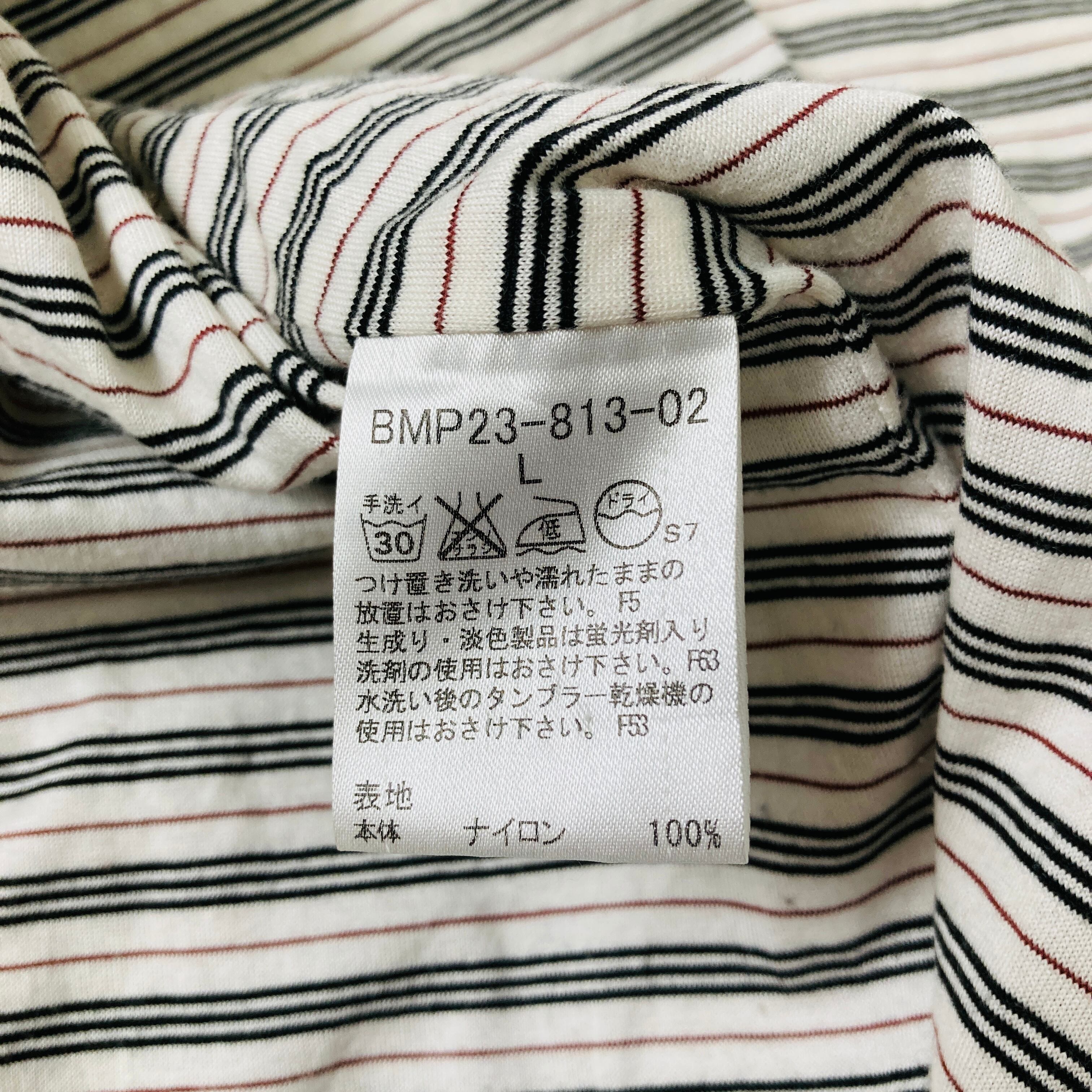 胸元に刺繍ロゴ入り。裏地ボーダー柄。
